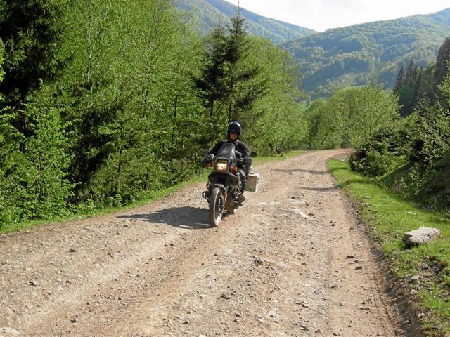 Transcarpatia 2006: Mit Robert aus der Schweiz plante ich eine Motorradtour entlang dem Karpatenbogen. Robert hatte ich vorher während der Kroatientour mit der XT600 kennen gelernt. Seine Erfahrungen aus einer Vielzahl von Trekkingtouren durch Rumänien sowie der Slowakei und seiner BMW-Geländemotorrad-Erlebnissucht macht ihn zum unschlagbaren Reisepartner. So fuhren wir mit zwei BMW-Dickschiffe über Wien in die Slowakei, über die „Hohe Tatra“ in die Ukraine ein und besuchten dort den Mittelpunkt Europas ! Über katastrophale Straßen, unwegsame Wege, fuhren wir vor der moldawischen Grenze südlich weiter nach Rumänien, vollführten in einem großen Bogen und dann den Abschluss bis nach Ungarn. In Budapest trennten sich unsere Wege, da Robert leider wieder arbeiten musste. Ich fuhr noch über Kroatien für 3 Tage nach Slowenien und bin dann über Tschechien nach Polen heimgefahren. Die Ukraine und Rumänien haben uns beide derart fasziniert, das wir wohl nicht das letzte Mal dort gewesen sind. Strecke: 9.000 Km