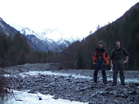 Am 11.12.2006 machten wir uns schliesslich auf die Rückreise zum Bulli. Ich konnte ca. 15 Kg meines Gepäcks im Packsack hinter mir her ziehen. Marco zog gleich seinen ganzen Rucksack hinter sich her. Der Abstieg bis nach Spielmansau war ein einziger Kampf gegen die Schneemassen. Ab dort mussten wir unser Gepäck wieder auf dem Rücken tragen. Bei absoluter Dunkelheit schafften wir es bis zum Bulli. Völlig fertig schlief ich sofort ein. Am 12.12. fuhren wir heimwärts. Interessanter Weise gab es in Oberstdorf keinen Schnee mehr.