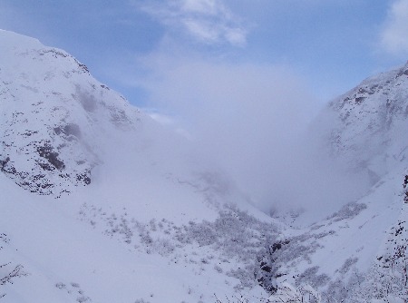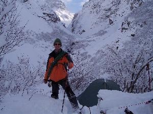 Am darauf folgenden Tag beschlossen wir früh morgens unsere Tour ohne Gepäck fortzusetzen. Es war ein träumhafter Ausflug. Teilweise stand uns der Schnee bis zur Brust. Wir mussten einige Umwege in Kauf nehmen um weiter voran zu kommen. Die Fotos sprechen für sich. Wir waren ganz schön erfroren und die nächtliche Temparatur fiel auch noch auf - 10 C°. Der Atem nebelt im Zelt und gefror unverzüglich an der Zeltinnenwand zu Reif.